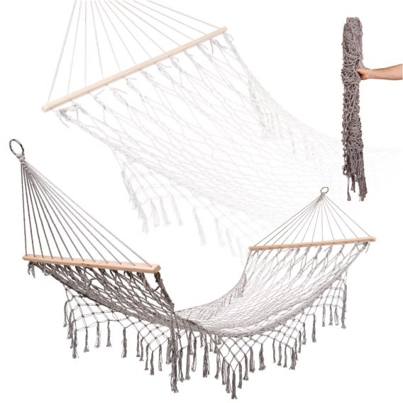 Hamak ogrodowy boho siatka frędzle leżak wiszący makrama 200cm Szary