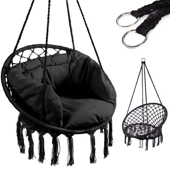 Huśtawka LUARO fotel bocianie gniazdo z poduszką czarne 80cm 150kg