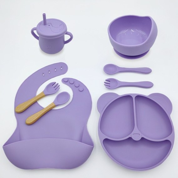• Naczynia silikonowe dla dzieci zestaw 8 elementów fioletowe