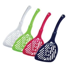 Plastikowa łopatka do kuwety dla kota. W małym rozmiarze. Kolor wysyłany losowo. Opakowanie 1 sztuka.