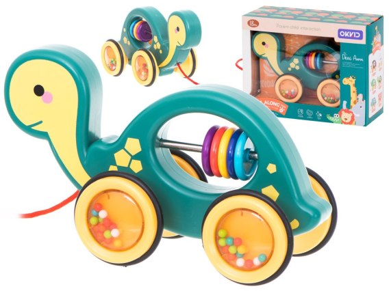 Do grzechotki przyczepiony jest długi sznurek, który umożliwia wygodne ciągnięcie jej za sobą! Dzięki temu żółwika można zabrać na długi spacer i wspaniała przygodę!